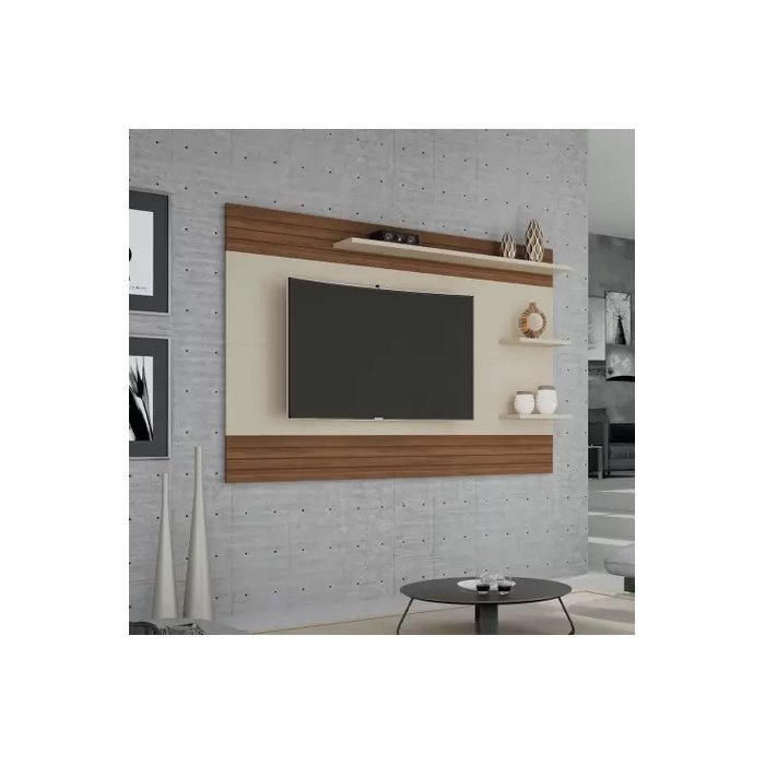 Painel Suspenso Flutuante Home Tv até 60 Polegadas 3 Prateleiras Mirage 1.80:off White/freijó