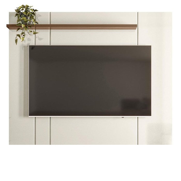 Painel Suspenso Kiev para TV até 70” Off White Perolizado/Cedro - Lukaliam Móveis Off White Perolizado/Cedro