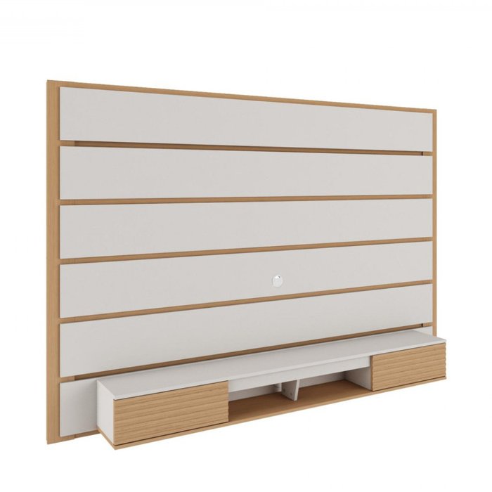 Painel Suspenso Lages Ripado 180 Cm com Nicho de Mdf Natural com Off White