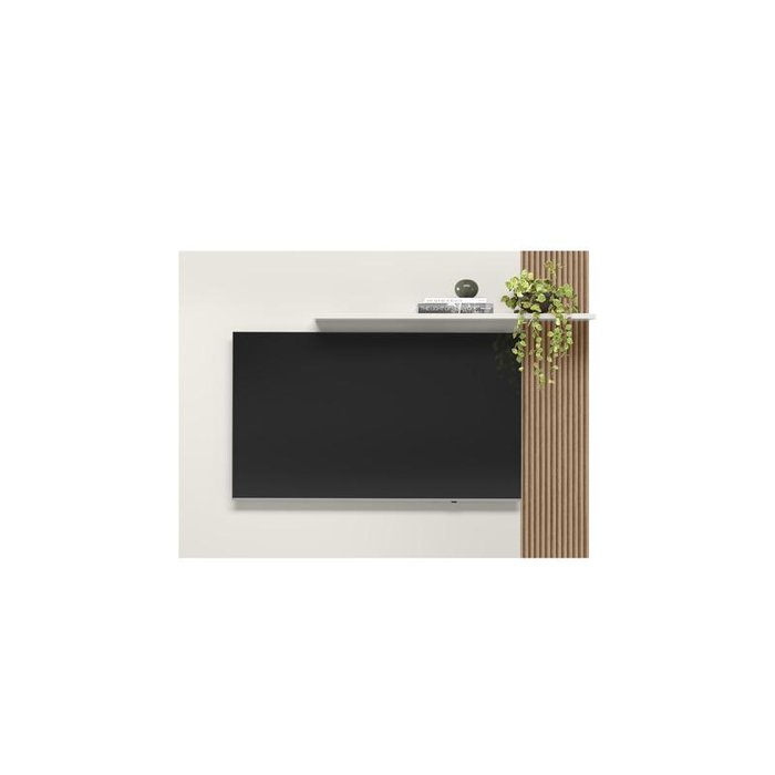 Painel Suspenso Para Tv 1,20x90 cm Off White Cristal/Ripado Madeira - Demadero Off White Cristal/Ripado Madeira