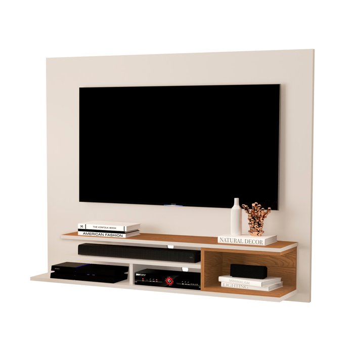 Painel Suspenso para Tv 40 Polegadas com 4 Nichos e 1 Prateleira - Oliart - Off White / Freijó