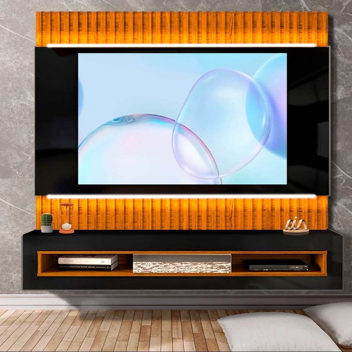 Painel Suspenso Ripado 100% MDF TV Até 65 Polegadas Preto Freijó Marcco Shop JM