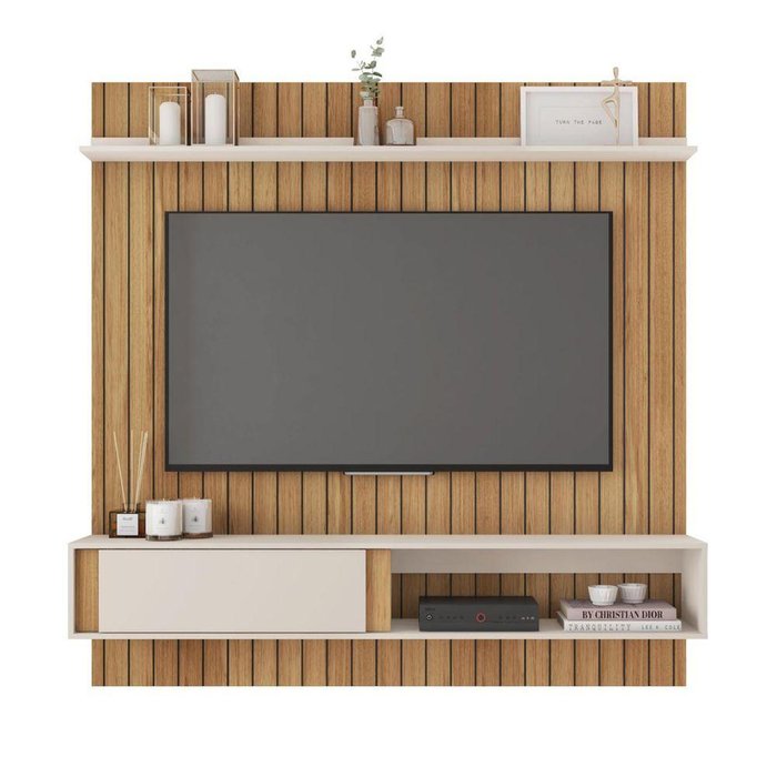 Painel Suspenso Ripado Tvs 65 Polegadas Buriti Off White Buriti/Off White