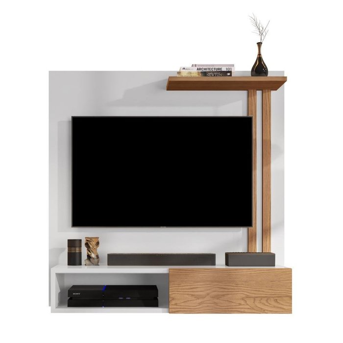 Painel Suspenso Tv 32 Polegadas Prateleira Nicho Porta de Correr Sala Quarto Flow - Branco/nature
