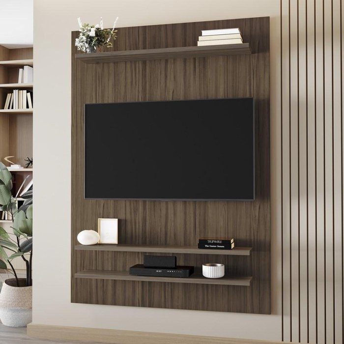 Painel Home Suspenso Para Tv Até 50 Polegadas 3 Prateleiras Sala De Estar Marrom Escuro