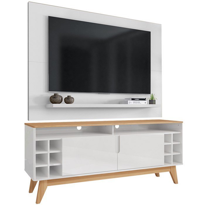 Painel Tv 50 Pol 088163 E Rack Com Adega 011077 Branco Noce DCASA
