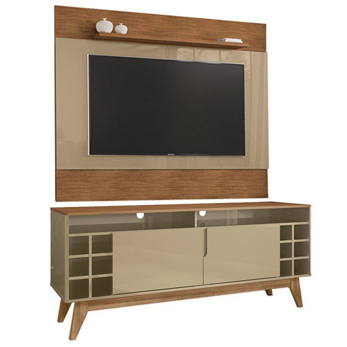 Painel TV 50 Pol E Rack 135cm com Adega 088166X011077 Champagne Cedro DCASA
