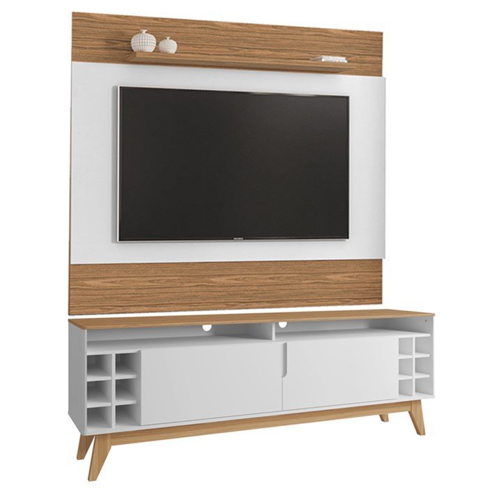 Painel TV 50 Pol E Rack 160cm com Adega 011078X088167 Branco Noce DCASA