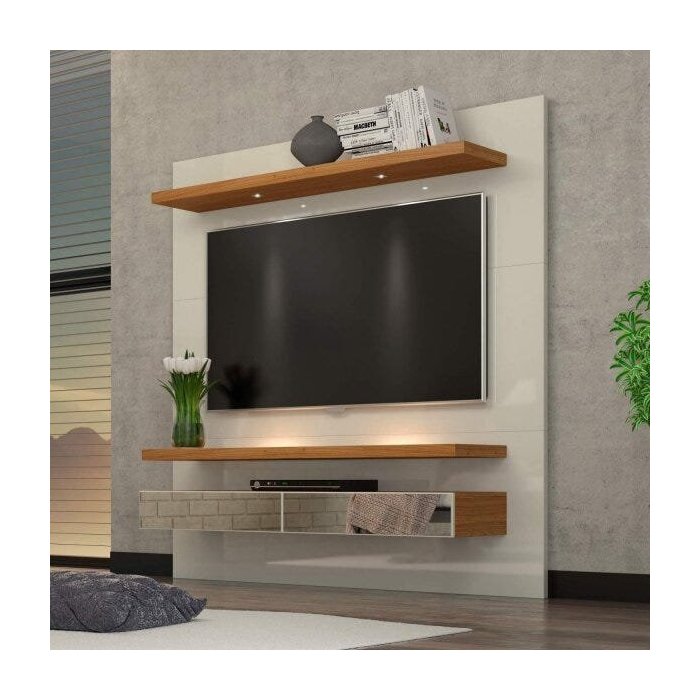 Painel Tv 60" Suspenso 1,80m com Luzes Led e Espelhos 100% Mdf Tb107e Dalla Costa - Off White/freijó