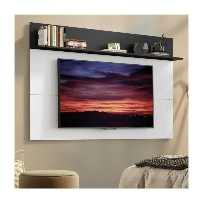 Painel Tv 65 Polegadas com Prateleira Amsterdã Plus Multimóveis Branco/Preto