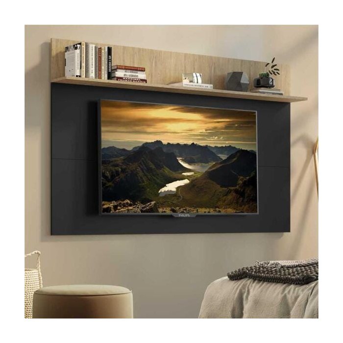 Painel Tv 65 Polegadas com Prateleira Amsterdã Plus Multimóveis Preto/Rustic