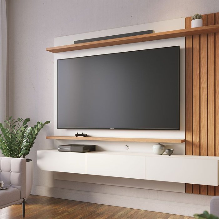 Painel Tv 70 Pol 180cm Bancada Suspensa Ripado Luca Off White Matte/freijó C04 - D'rossi