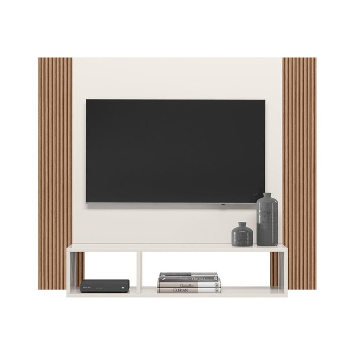 Painel Tv até 40" com Nicho Multimóveis Cr45229 Off White/ripado Madeira