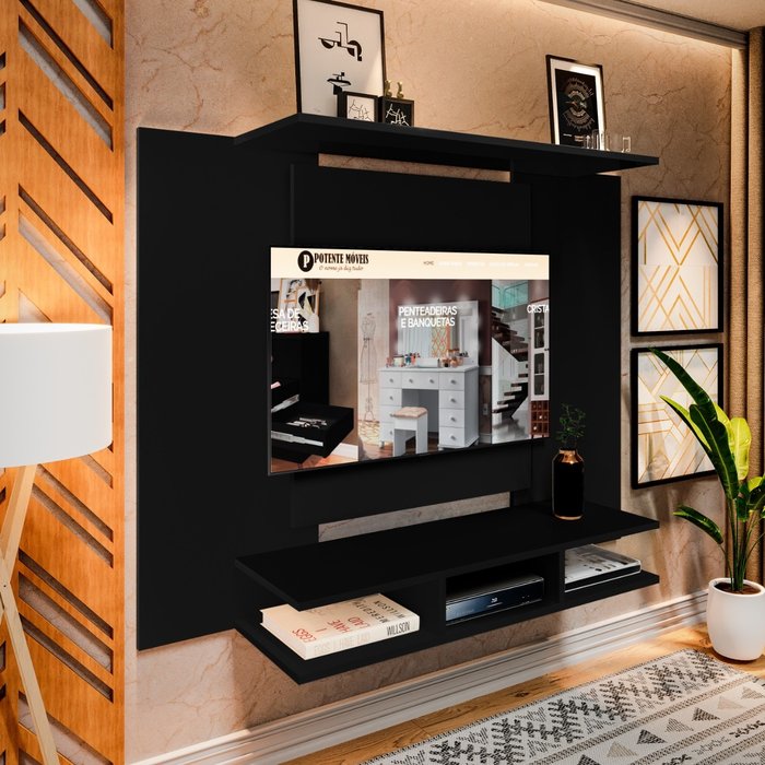 Painel TV Ate 50 Rubi 100% Mdf C/Suporte Universal Preto Fosco
