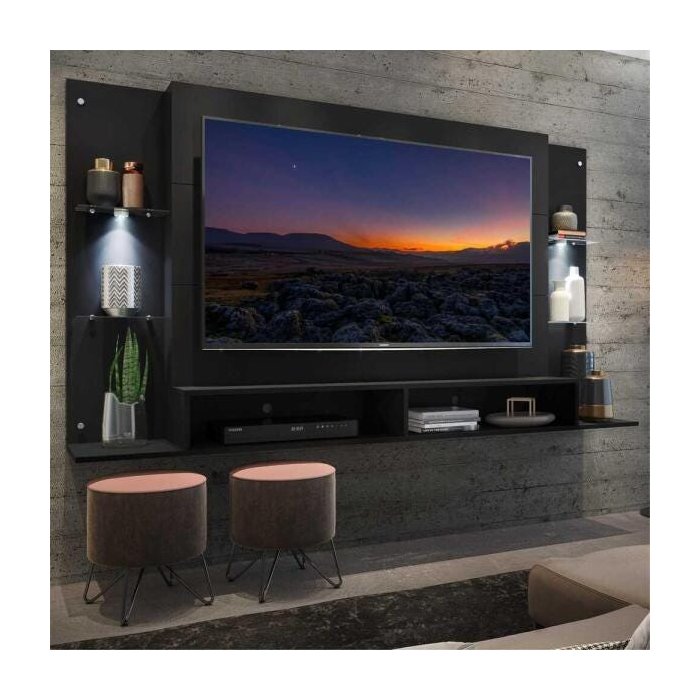 Painel Tv Até 60 Polegadas com 2 Leds e Prateleiras de Vidro Vegas Multimóveis Preto
