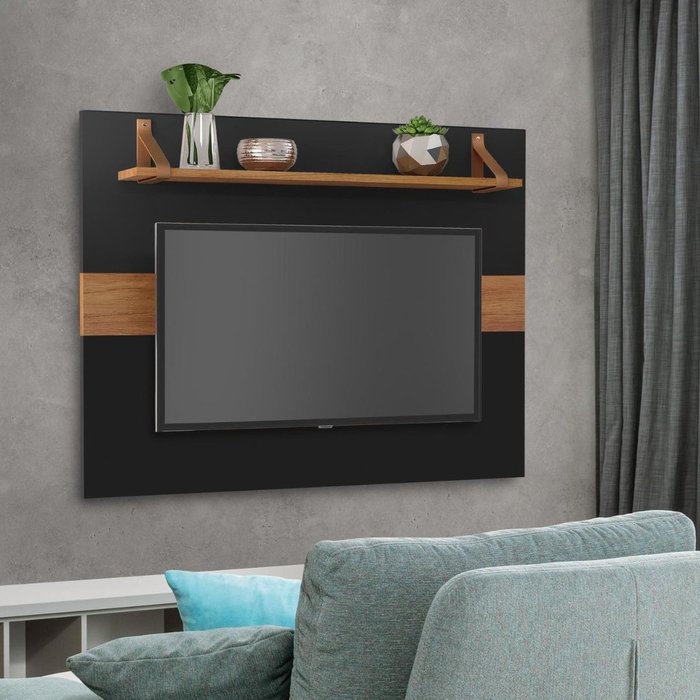 Painel Tv Maldivas Preto para Tv Grande 128cm Largura Mdf Resistente Sofisticado