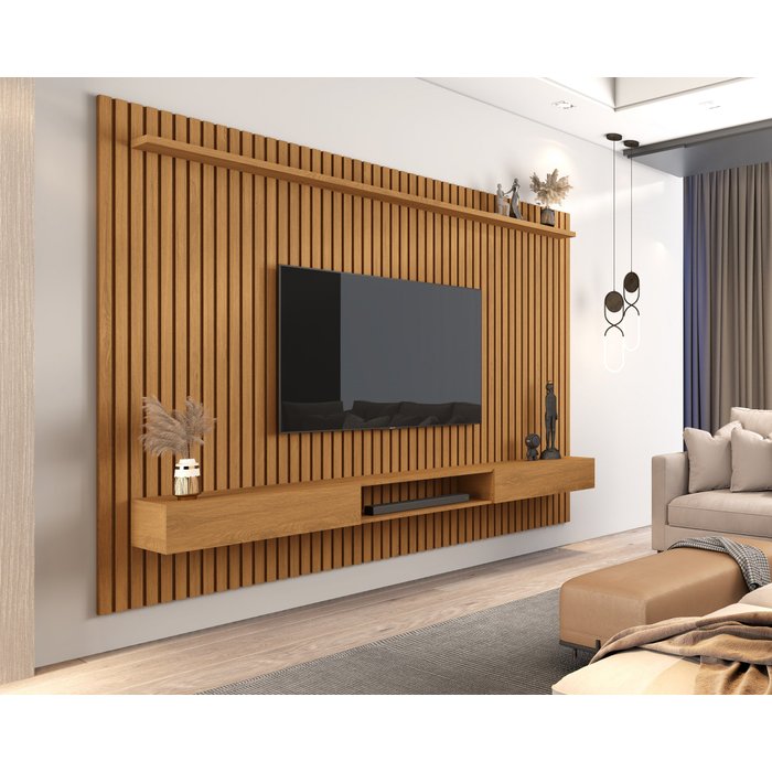 Painel Versátil Ripado 2.2x1.8 + Nicho 2.2 p/ TV até 75'' Nature - Giga Móveis