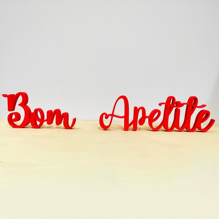 A palavra "Bom Apetite" possui 38 cm de comprimento, 7 cm de altura e 1.5 cm de espessura.