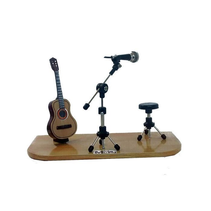 Palco miniatura violão micfofone e banco