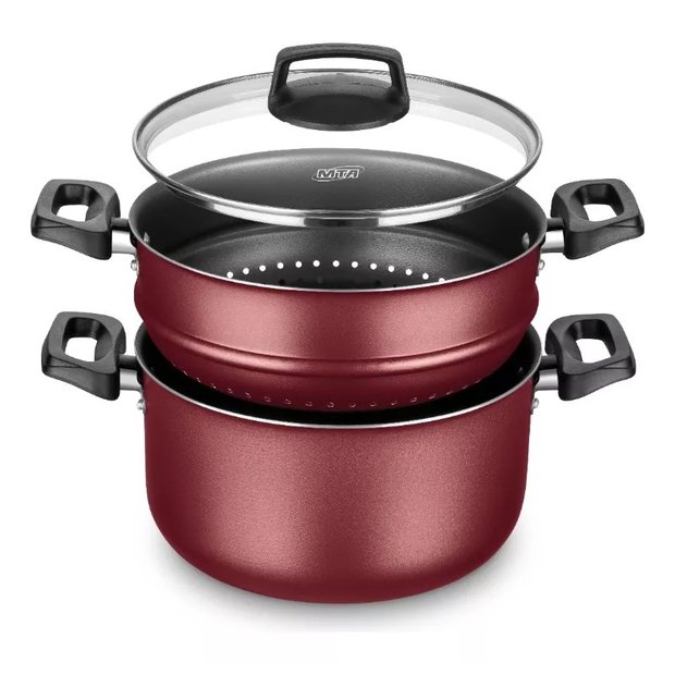 Panela a Vapor Cozivapor 3 em 1 Antiaderente 3,2 Litros Cereja Mta Cereja