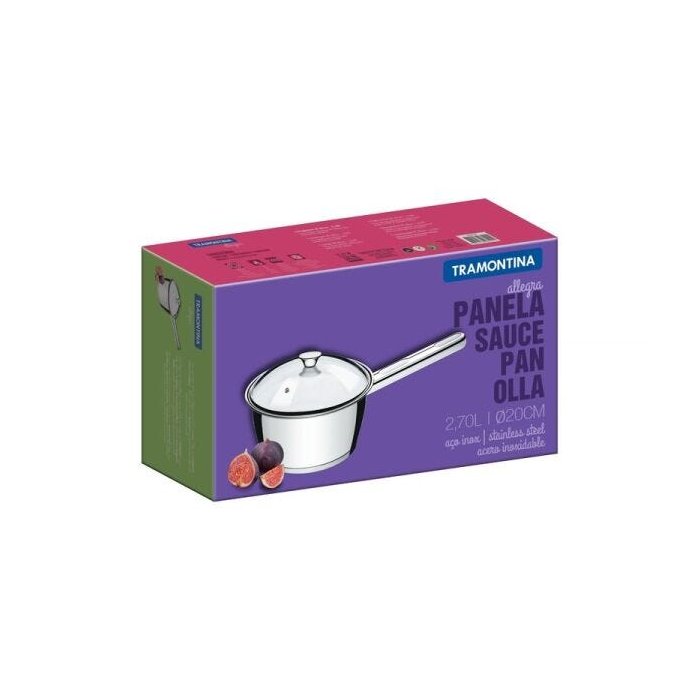 Panela ACO INOX com Fundo Triplo e Tampa de Vidro 20CM