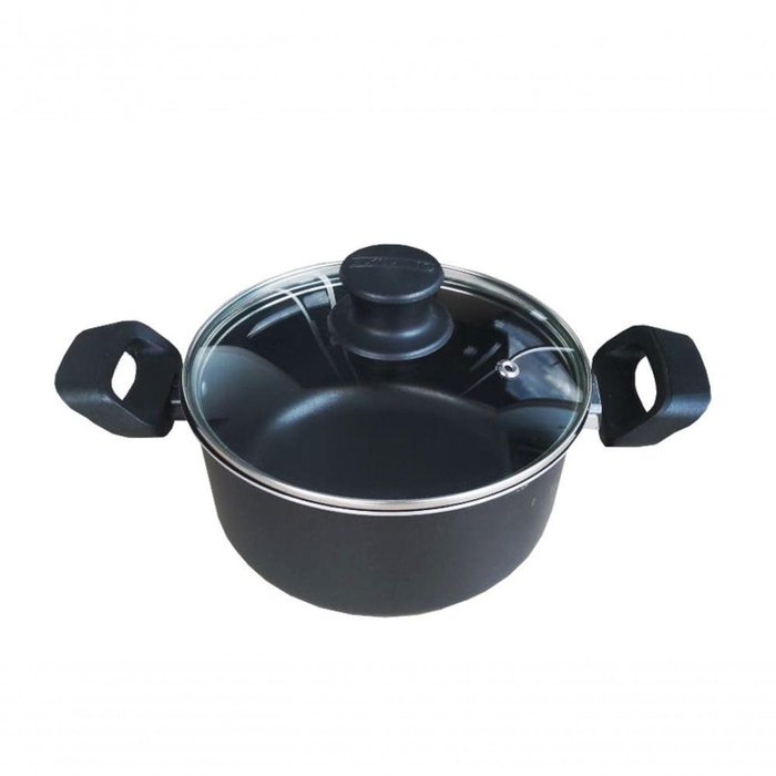 Panela de aluminio grosso, exelente acabamento, com revestimento Superflon de 3 camadas, com tampa de vidro temperado.Marca: Extang aluminios.Cabo duplo antitermico. Dimensões:Altura sem tampa: 9,5Cm.Diamêtro: 20Cm.Peso: 760 Gramas.