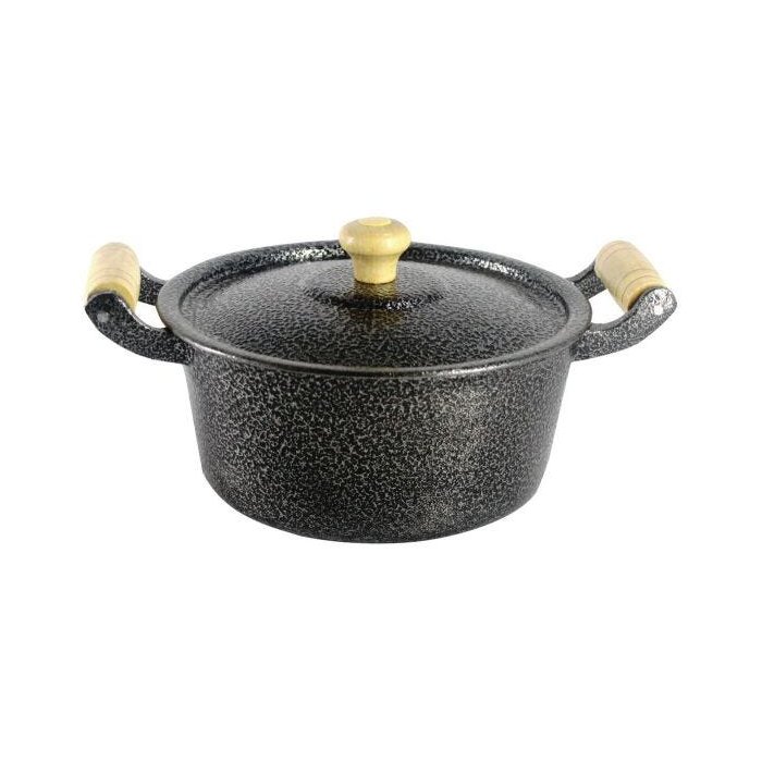 Panela Caçarola Alumínio Preto Alça e Pomel de Madeira 14 Cm Diâmetro 0,9 Litro