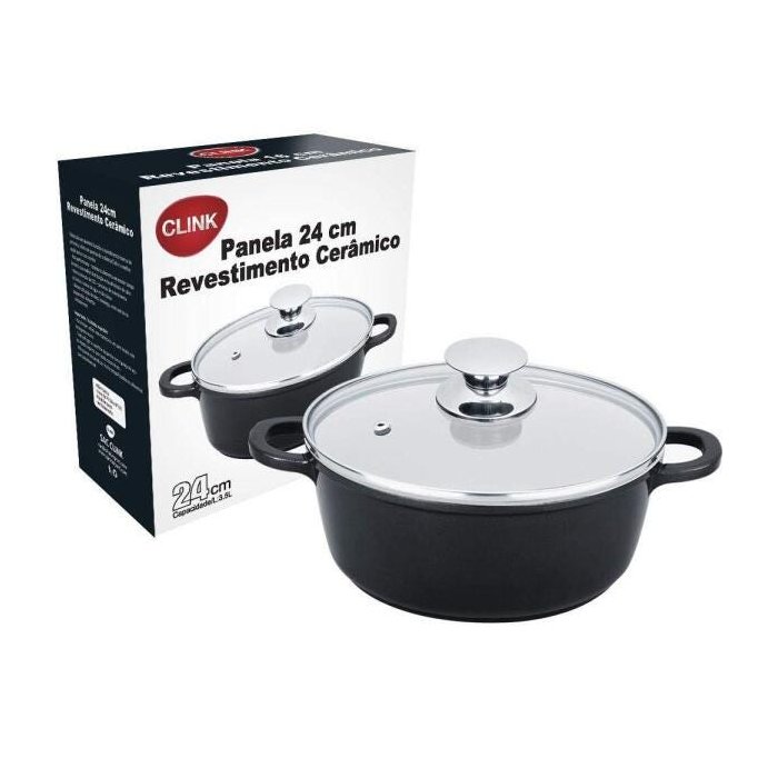 Panela Caçarola Clink Revestimento Cerâmico 5mm Preta 20cm