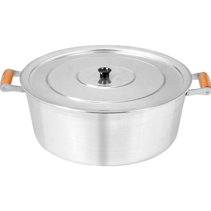 Produzida em alumínio, com espessura de 2,5 mm, o que faz com que o calor seja uniforme em toda área do produto, suportando altas temperaturas por muito mais tempo e consequentemente fazendo com que o cozimento do alimento seja mais rápido. Esta caçarola tem a boca com diâmetro de 36 cm com capacidade para 14 litros, dispondo de tampa com puxador.