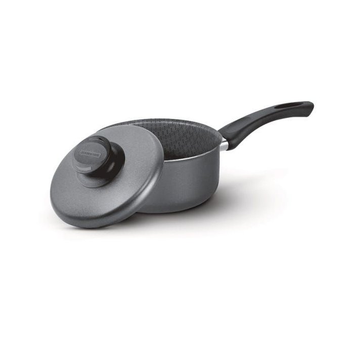 Descrição: 1. Panela com tampa com revestimento interno e externo em antiaderente Starflon. 2. Devido ao revestimento antiaderente os alimentos não grudam, proporcionando facilidade na limpeza. 3. Tampa com saída de vapor. 4. Proporciona um cozimento rápido e uniforme. 5. Pode ser utilizada no fogão a gás, elétrico e vitrocerâmico. 6. Pode ir à máquina de lavar louças. 7. Seguindo as instruções de uso, a panela permanecerá bonita por muito mais tempo. Orientações Gerais: Antes de usar: Lave interna e externamente a panela, usando apenas uma esponja macia, sabão neutro ou detergente líquido. Enxugue bem com um pano seco e unte todas as partes internas com óleo ou gordura. Leve ao fogo baixo por um ou dois minutos. Deixe a peça esfriar, lave e enxugue novamente. Durante o uso: Evite esquentar demais a panela vazia. Use a sua panela Starflon sempre em fogo baixo ou médio para reter o valor nutritivo dos alimentos e conservar o antiaderente. Evite que as chamas atinjam as laterais do panela. A panela com antiaderente não pode ser aquecida a temperaturas superiores a 350°C. Para mexer ou tirar o alimento, use somente utensílios de silicone, nylon ou madeira que não cortam e não riscam a superfície dos produtos Starflon. Nunca corte alimentos diretamente no revestimento antiaderente. Limpeza: Evite a imersão da panela quente em água fria. Deixe a panela esfriar antes de lavar. Mesmo depois de vários usos nunca utilize produtos abrasivos na lavagem da sua Starflon, como saponáceos ou palhas de aço. Se deixar queimar alimentos, deixe seu produto de molho em água durante algum tempo antes de lavá-lo. O seu produto Starflon pode ir à máquina de lavar louça. Uso seguro e adequado: Ao utilizar utensílios mantenha fora do alcance de crianças. Ao manusear utensílios quentes tenha cuidado redobrado e se necessário utilize proteção para as mãos. Para sua maior segurança ao utilizar utensílios com cabos, mantenha os mesmos sempre voltados para o centro do fogão. Dados do produto: Peso Líquido: 0,7800 kg. Peso Bruto: 0,7800 kg. Metragem: 0,016399 m³. Dimensões Embalagem (Compr. X Larg. X Alt.): 414x 233x 170 mm. Dimensões Produto (Compr. X Larg. X Alt.): 414x 233x 170 mm. Panela com tampa em alumínio com revestimento em antiaderente. Cabo de baquelite antitérmico.