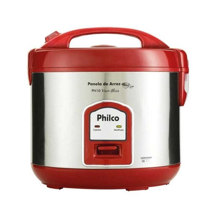 • A Panela de Arroz PH10 Visor Glass Vermelha Philco tem capacidade para preparar até 10 xícaras de arroz de uma vez. A qualidade e a praticidade são comprovadas!