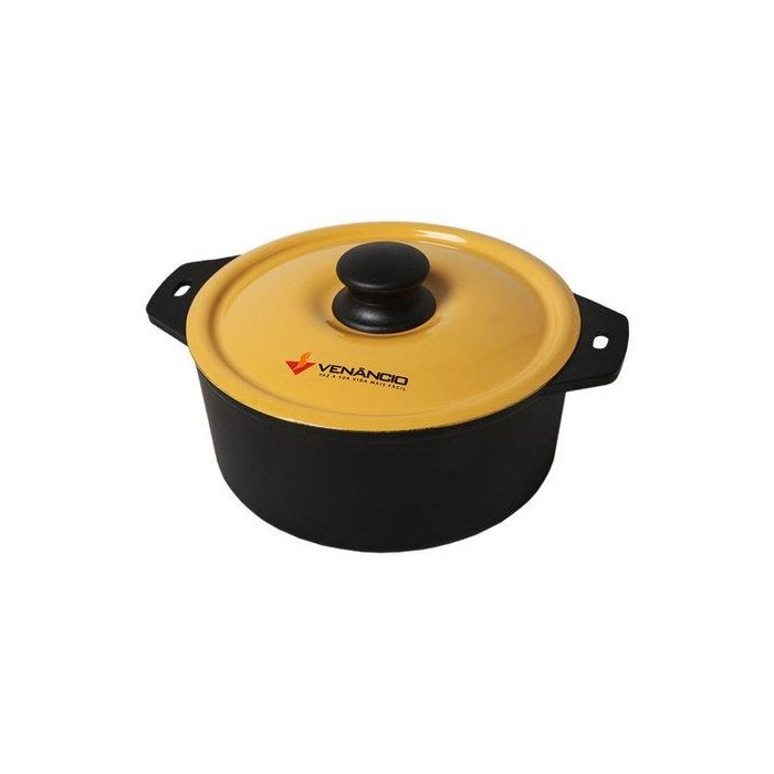 Panela de ferro fundido 180x82mm com tampa esmaltada Amarela - Venâncio