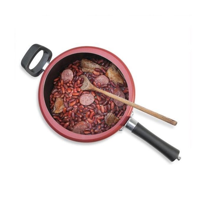 Seu feijão delicioso e pronto em dois toques. A panela de pressão da linha Chilli é ideal para o dia a dia, pois além de cozinhar de maneira mais rápida e homogênea, ela também possui avançados mecanismos de segurança aprovados pelo Inmetro. Seus cabos e alças de baquelite antitérmico facilitam o transporte e evitam possíveis queimaduras. A válvula de segurança garante o fechamento correto da panela. O modelo possui corpo em alumínio e revestimento interno Pro-Flon, além de cobertura antiaderente composta por 5 camadas que facilitam a limpeza. O produto tem capacidade para 4,5 litros.