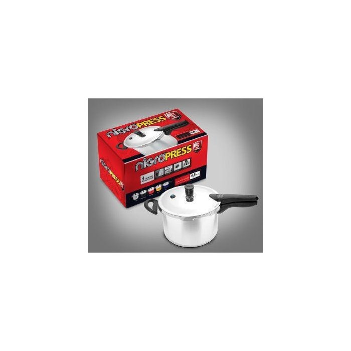 PANELA DE PRESSAO PRESS NIGRO 4,5 LITROS F EXTERNO - 097002 Descrição Técnica: Cor: SEM COR - Voltagem: SEM VOLTAGEMItens Inclusos:Dados do produto Garantia: 0(dias) Marca: NIGRO NCM: 76151000 EAN: 7891232970024 Dados de Embalagem Peso Total (Produto + Embalagem): 2230.00(gr) Altura: 30.30(cm) Largura: 39.80(cm) Profundidade: 53.30(cm)
