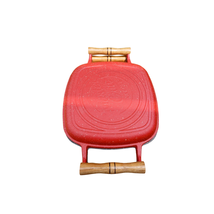 A Panela Dupla Antiaderente 34cm Vermelha La Chef Reforçada é uma panela versátil, ideal para grelhar carnes, vegetais, peixes, sanduíches e pizzas. Seu design robusto, com base espessa de 5 mm, evita que os alimentos queimem, proporcionando grelhados mais saborosos e uniformes.