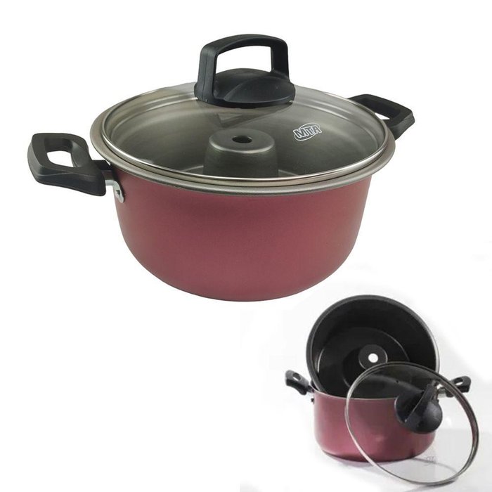 Panela Forma de Pudim Banho Maria Tampa de Vidro 3,2 Litros 5 Camadas Teflon Cozinha