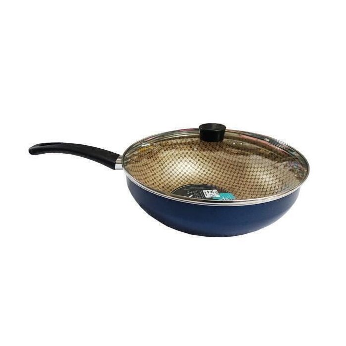 Panela WOK MTA Starflon com tampa de vidro temperado.