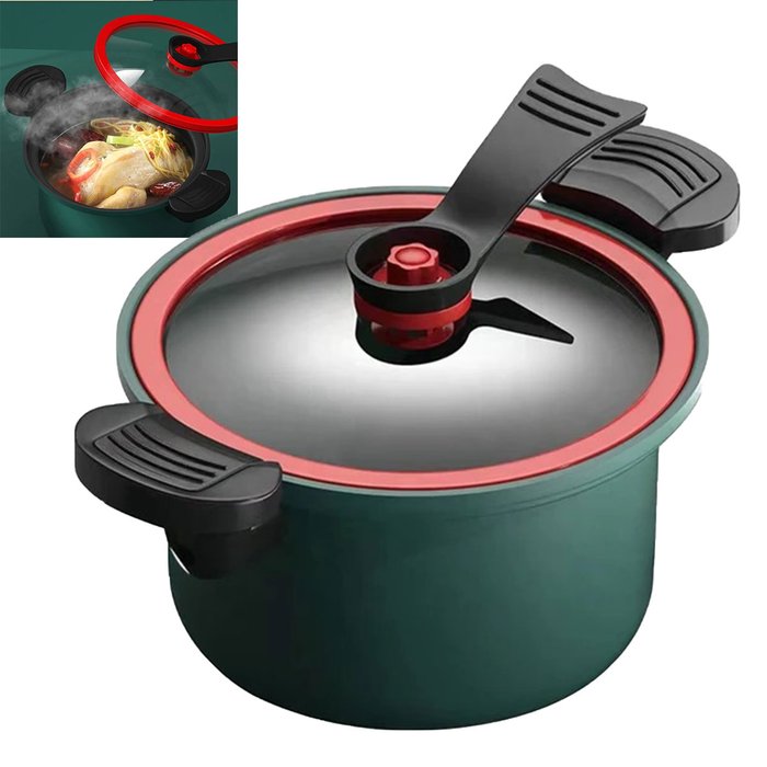 Panela Micro Pressao Vacuo 3,5 Litros Cozinha Refeiçao Caldo Sopa Legumes Cozimento Vapor Antiaderen Verde