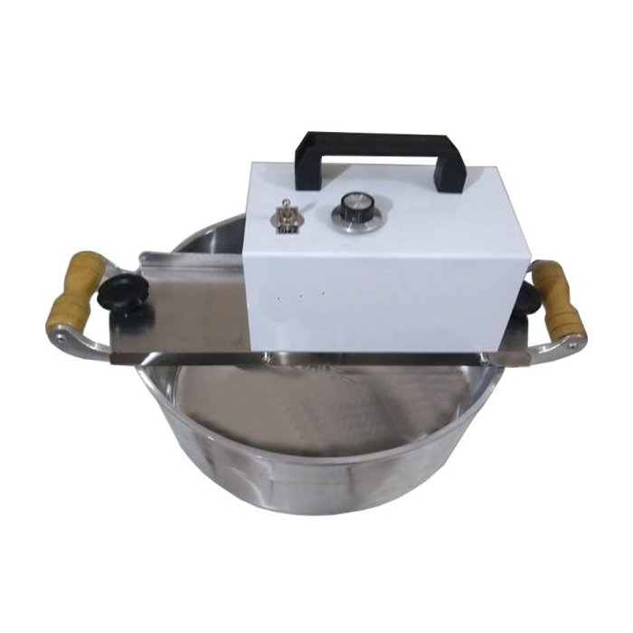 Panela vai ao fogo e o conjunto de mexer deve estar conectado à rede elétrica