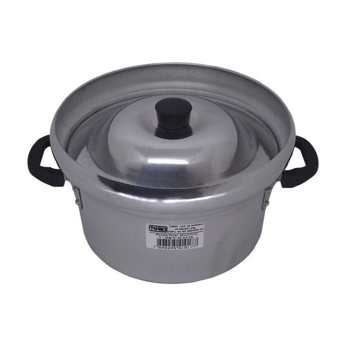 Corpo e tampa produzidos em alumínio polido com alças em baquelite.