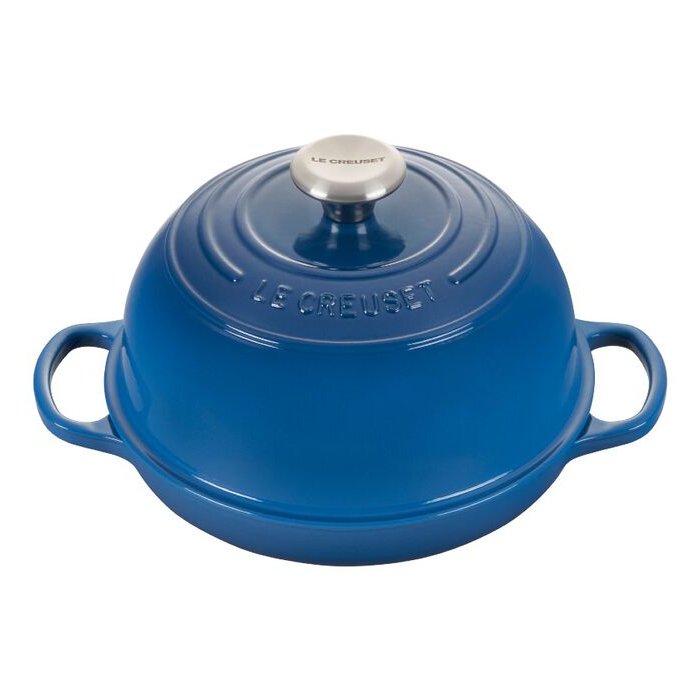 • A Panela para da Pão Signature Le Creuset, é funcional e bonita. Apresenta uma tampa em forma de cúpula que prende e circula o vapor para um excelente sabor final, enquanto sua base assa uma camada uniforme e produz uma crosta dourada e crocante marcada com nossos três anéis escrito Le Creuset.