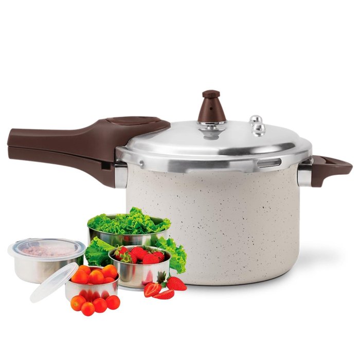 Panela Pressão Antiaderente Cerâmica 4,2l Indução C/3 Potes