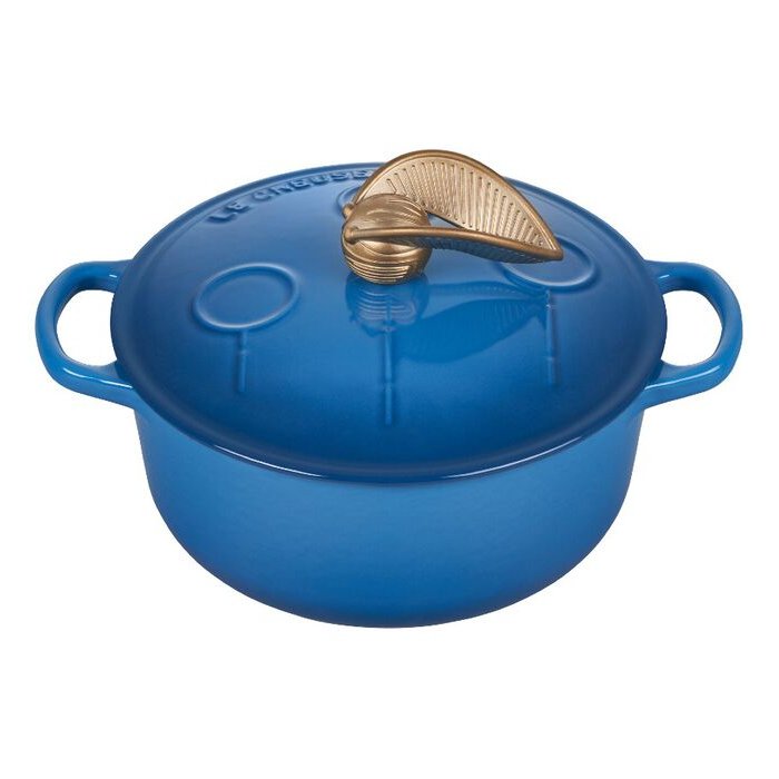 • Ganhe o jogo mais disputado da cozinha, colocando as mãos nessa Panela Redonda Edição Limitada. Finalizada com o rico Azul Marseille da Le Creuset, a Panela Redonda Signature Quadribol™ celebra o esporte favorito do mundo bruxo. Fixado na tampa, que é gravada com três gols do Quadribol™, há um pegador dimensional com acabamento em bronze no formato do Pomo de Ouro.