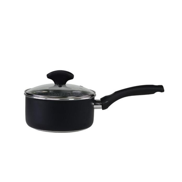 Panela Revestida com Dylon antiaderente com tampa de vidro temperado 16cm Ravelli Italy Preto