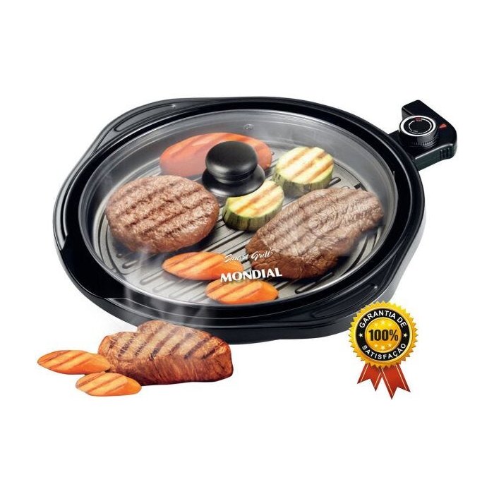 Panela Smart Grill Redondo Grelha Elétrica 127v Antiaderente 30 Cm Tampa De Vidro 1200w Bandeja Coletora Tampa De Vidro Mondial Original