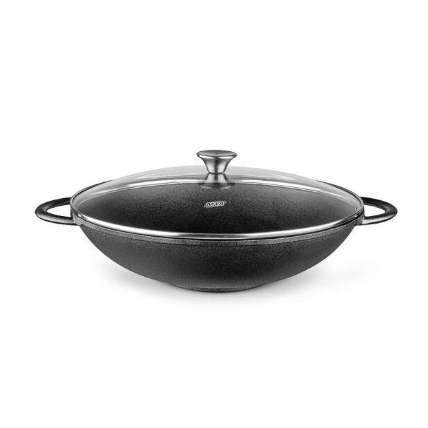 Panela Wok Ferro Fundido com Tampa de Vidro - Mta