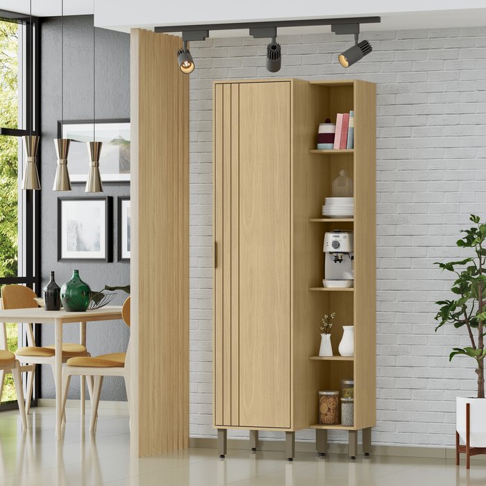 Paneleiro 1 Porta Usinada e 5 Nichos Glória Marrocos/Off White