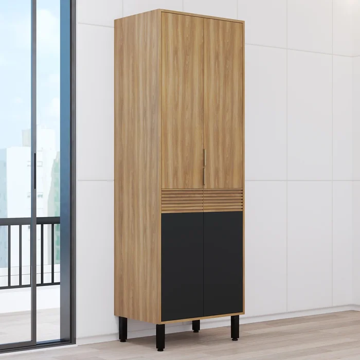 Paneleiro 2 Portas 70cm Thalita Nogal Manchester/Preto