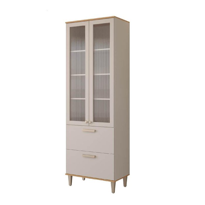 Paneleiro Cristaleira MGM Bella 2 Portas com Vidro Canelado - Freijó/Off White