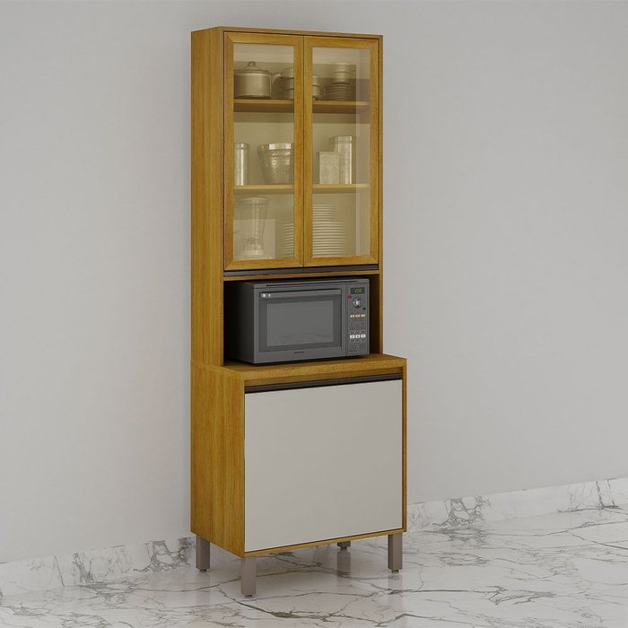 Paneleiro Cristaleira Nala 2 Portas Espaço para Microondas Mobilihouse
